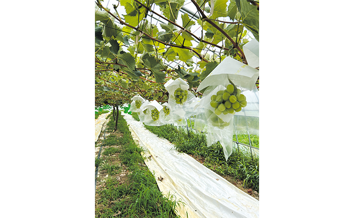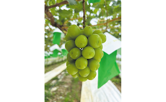 途方もない手間と愛情をかけて育った三浦さんのシャインマスカットは多くのファンからの注文が殺到する。出来あがりをイメージしながら房の形を整えるという極上のシャインマスカットは平均糖度18度。甘さと酸味のバランスが抜群だ。