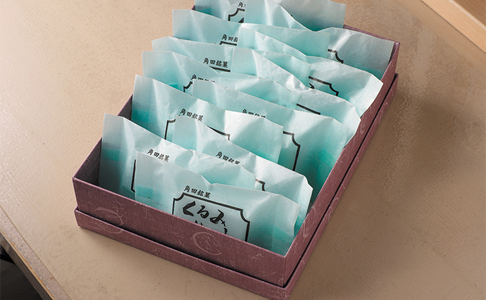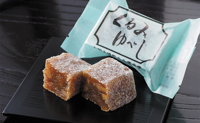 約50年前から角田駅前に店を構える老舗菓子店「まえばし」の看板商品「くるみゆべし」を紹介しよう。