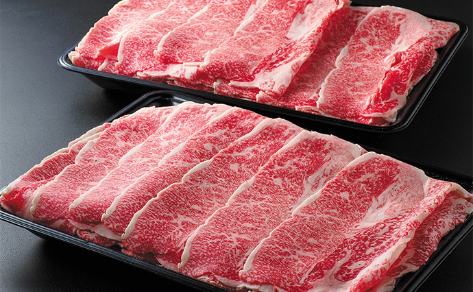 「たとえ切り落としであっても、精肉店として誇れる部位を厳選しています。そこには、見た目のおいしさも含まれます」と川合さん。30年以上勤務しているベテランの職人が赤みと脂身のバランスを見ながら丁寧にスライスし、パック詰めを行っている。返礼品の切り落としは肩肉なので、厚みがあると調理したときに固くなってしまいがち。そのため薄切りにして、やわらかさを出し、しっかりとした旨みも感じられるように配慮している。