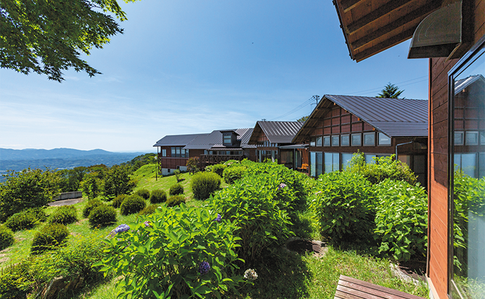 同公社の返礼品をもう一品ご紹介しよう。「絶景と澄んだ空気を体いっぱいに吸い込みたい」「都会の喧騒から離れて心身をリフレッシュしたい」。そんな願いをかなえるのが、ムシムシランド近くにある、標高約800mに位置する山頂リゾート「スカイパレスときわ」の「ペア宿泊券」だ。