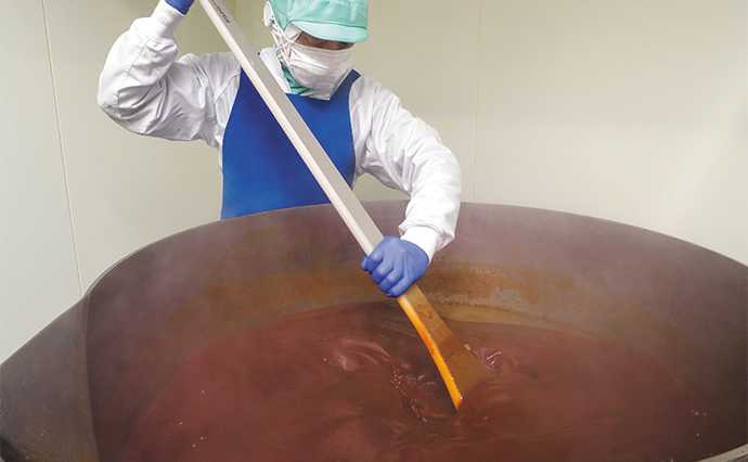 秘伝のデミグラスソースは甘めの味つけとコクが特徴。ソースは蒸気釜でじっくり煮込んであり、さらに一晩熟成させることで深いコクと旨みを引き出している。家族で楽しめるよう、お子様から大人まで、みんなが大好きな味に仕上がった。