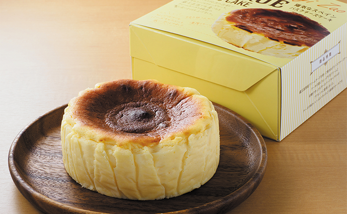 「バスクチーズケーキの材料はシンプルで、クリームチーズ、蔵王の卵、バター、小麦粉、糖分(オリゴ糖)を使っています。地域の食材にこだわり、特にチーズは宮城県の酪農センターから取り寄せています。さっぱりとした口あたりと、軽やかな味わいのチーズケーキです」