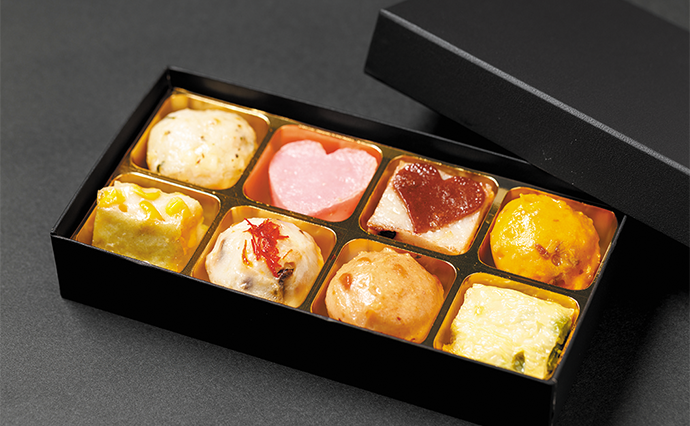 2021年には、「カワイイ・おもしろい・新しい」をテーマにした新ブランド「nerimo.」を発表。第一弾「トリュフチョコみたいなさつま揚げ」は、味つけや意匠性が高く評価され、「第66回 全国水産加工たべもの展」水産ねり製品部門の「農林水産大臣賞」に選ばれた。「すり身と副素材の相性を大切にし、何度も分量や配合を検討しながらおいしさを追求。お客様から好評だった八つの味を厳選して商品化しました」と魚谷さんは語る。魚肉タンパク質が豊富なさつま揚げは、世界が注目するヘルシーフード。お子さんから年配の方まで安心して食べていただきたい。