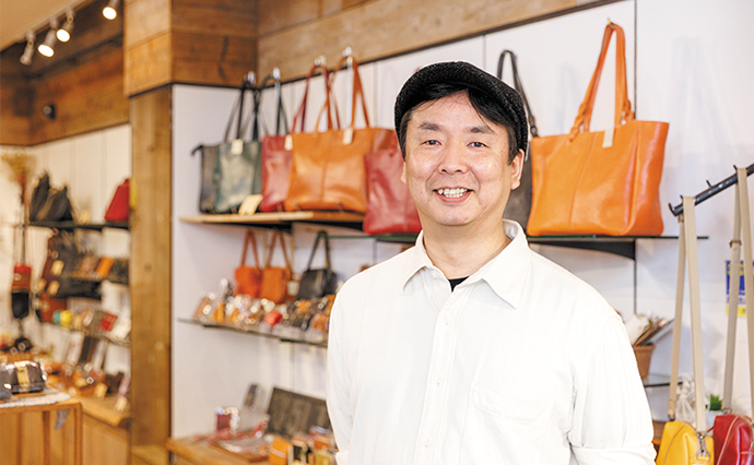 「奈良には手つかずの自然や文化遺産が数多くあります。そんな地域の魅力や革本来の良さをお客様の生活に取り入れてほしいという想いで創業しました」と語るのは、社長の辻之所恒久さん。国産の和牛革やホルスタイン革を使うのは、命のすべてを大切にしたいというこだわりから。