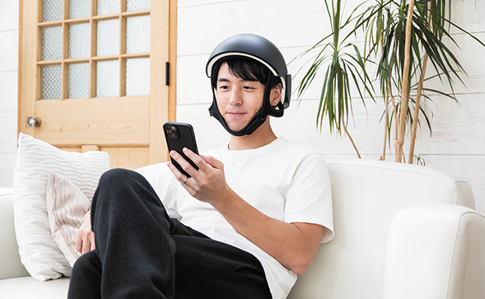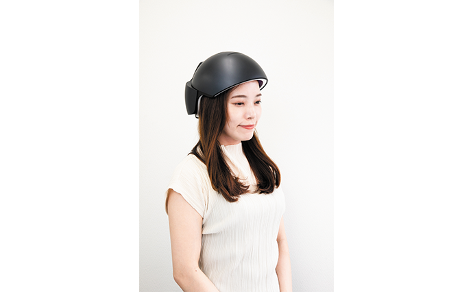 「AGA治療を手掛ける企業が持つ特許技術を利用して共同開発を行いました。このデバイスでオゾンを発生させます。オゾンを適切に発生させ、育毛研究で注目されるIGF-1(インスリン様成長因子)に着目した最先端技術で健やかな頭皮ケアをサポートします。使い方は簡単。電源を入れてかぶるだけ。準備ができると、赤色LED、青色LED、遠赤外線、オゾンが出る状態になります。10分経過すると自動で電源がオフになり、ケアは終了。1日1回を目安に使ってください。セルフクリーニング機能があり、自動で除菌してくれるので清潔です。男女問わず、髪の悩みを持つ方におすすめです」