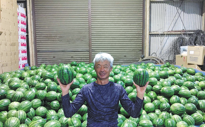 皮が薄く、食べたときのシャリシャリ感が抜群で皮の際まで甘くてうまいと大好評。切らずに冷蔵庫にすっぽり収まるサイズなので、直前まで鮮度を保てる。リピーターも多く、「皆さまから届く『おいしい!』に励まされています」と語る生産者の藤田益弘さん。2026年5月下旬から発送予定の先行予約も始まっている。