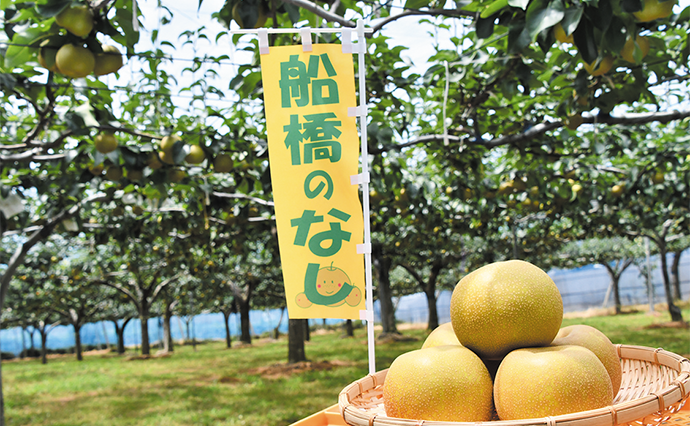 船橋市は全国有数の梨の生産地。「い志い農園」では、「幸水」を中心に3品種を栽培している。