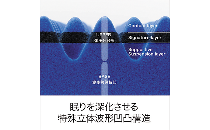 中でも、「[エアー01]マットレス」は、眠りを深化させ、快適な睡眠へと導く特殊立体波形凹凸構造を採用し、マットレスに求められる「体圧分散」「寝姿勢保持」の機能を高めることで快眠をサポートしてくれる。寝返りをうっても保たれる安定した寝姿勢と目覚めた時に感じるすっきり感。