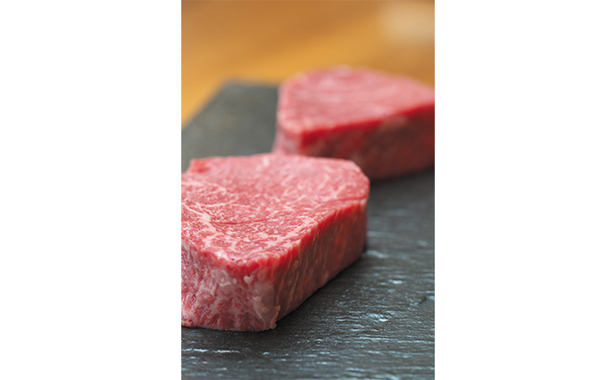 清潔で快適な環境のもと、独自配合の餌を与えながら一頭一頭の牛を大切に育てているとのこと。特にこだわっているのはメスの未経産牛ぎゅうで、肉の旨みととろける脂が好評だそうだ。