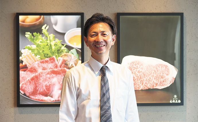 「当店では市場で近江牛を一頭丸ごと競り落とすため、低コストで質の高い牛肉を提供できるんです」と語るのは支配人の村上孝尚さんだ。