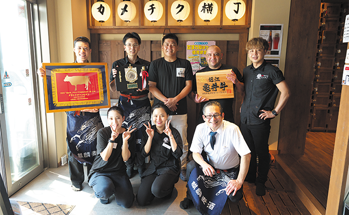 「もともと私たちは近江牛の生産農家なんです。本物のおいしさを気軽にお腹いっぱい食べていただきたくて、近江牛ホルモンの焼肉店も展開しています」と語るのは社長の亀井頌司さん。