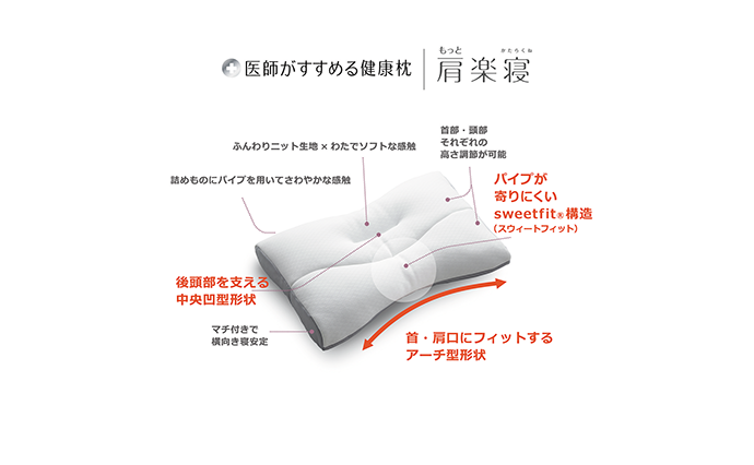 西川の返礼品として、もう一つご紹介したいのが、30年近い歴史を持つロングセラー商品「医師がすすめる健康枕」シリーズの「もっと肩楽寝」だ。「肩に悩みのある人にはぜひ試していただきたい商品です」と洲鎌さんが言うように、心地よい眠りとともに肩の悩みを解消していただきたい。