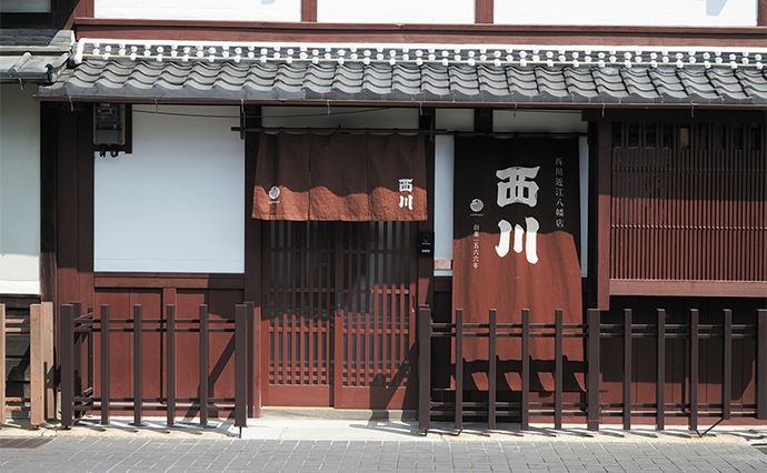 寝具メーカーとして知られる「西川」の創業者・仁右衛門が初めて店を構えたのは、まさにこの町並みの一画で、いまは「西川近江八幡店」として営業をおこなっている。