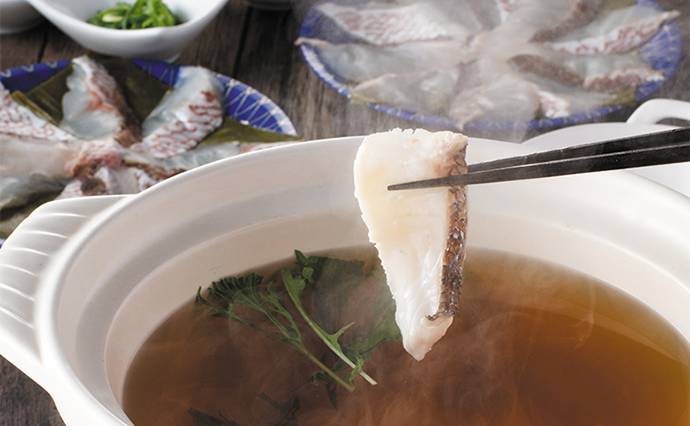 もう一つは、鯛をまるごと味わえる「鯛しゃぶセット」。鯛のあらで作っただしで鯛をしゃぶしゃぶするが、愛媛海産の鯛しゃぶはそれだけではない。