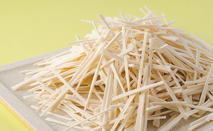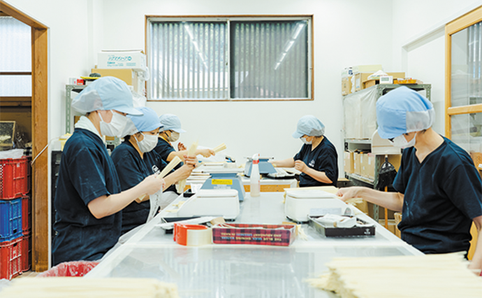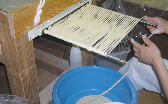 稲庭うどんは、国産小麦を100%使用し、仕込みから完成まで全て手作業で行われ、製品になるまでは丸3日間かかる。