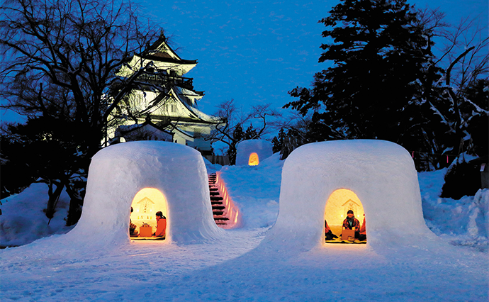 秋田県南東部に位置する横手市は、四季の変化がはっきりとした内陸性気候に恵まれ、豊かな自然と文化が息づいている。2月には水神様を祀り、家内安全や商売繁盛を祈願する「横手の雪まつり(かまくら)」を目的に世界中から観光客が訪れる。高さ3mほどのかまくらの中では、子どもたちが「入ってたんせ」「甘酒飲んでたんせ」と声をかけ、訪れた人々に甘酒やお餅を振る舞う。