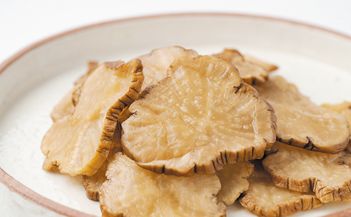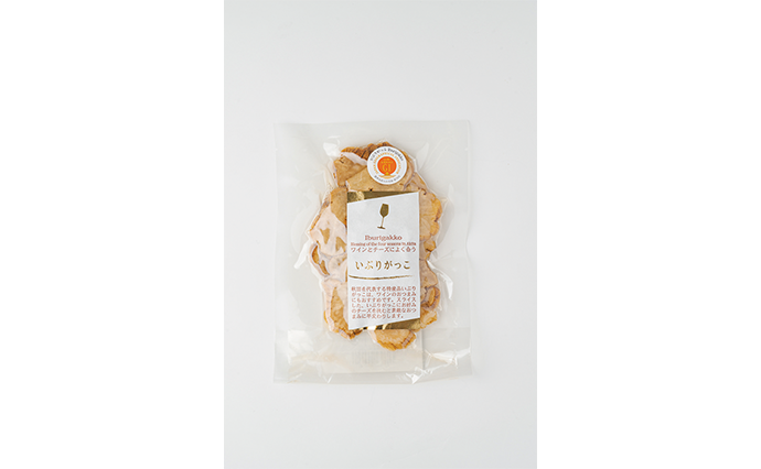 いぶりがっこは、大根、砂糖、塩、米ぬかという最小限の原材料で素材の力を最大限に活かした無添加商品。試作段階で10種類のレシピを試し、大半のスタッフが「これだ!」と納得した製法で12年前から製造している。一度に約2500本の大根を3日ほど燻して漬け込み、約2ヵ月で商品が完成する。燻煙の香ばしさがしっかり残り、かむほどに広がる甘みと塩味が絶妙だ。製造を手がける堀江明夫さんは「大量生産に走らず、素材や製法にこだわるからこそ、愛される商品になる」と話す。ぜひご賞味あれ。