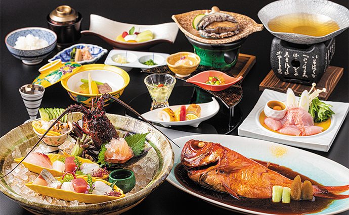 総料理長の武藤孝文さんは「国産米コシヒカリをクチナシの実で色付けした『黄飯』にし、網元流に海苔を敷くことで、よりおいしく仕上げました。自家製秘伝の煮汁を使った特製タレも味の決め手です」と言う。黄飯は東伊豆で祝い事の際に振る舞われる縁起物で、特別な日のご馳走にもなりそうだ。