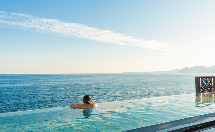 「漁船に乗っていただき、パワースポットの『はさみ石』を至近距離で見学したり、沖からの壮大な景色を楽しんだりできる約40分のクルーズです。船上では船長からのおもてなしグルメや飲み物のサービスもご用意しています」と話すのは内山綾子さん。