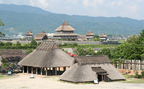 吉野ヶ里町との境にまたがり、40ヘクタールにわたる国内最大規模の弥生時代の環境集落「吉野ヶ里遺跡」は国指定特別史跡に指定され、観光スポットとしても名高い。現在は「吉野ヶ里歴史公園」として整備され、遺跡見学のみならず巨大複合遊具やバーベキューなども楽しめる。市内には吉野ヶ里遺跡以外にも、旧石器時代から弥生時代までの遺跡が多く残り、歴史が息づく。紅葉の名所として知られる九年庵、現存するレンガ造りの発電所としては九州でも最古の広滝第一発電所など、見どころは多い。12年に1度の申年に仁比山神社で行われる神事「御田舞」や隔年の4月に櫛田宮で開催される「みゆき大祭」、高志神社の秋祭りに奉納される「高志狂言」など、神埼市には神事や民俗芸能がさまざまに伝わる。高志狂言は、全国でも3ヵ所しか残されていない鷺流の流れを汲む県重要無形民俗文化財だ。