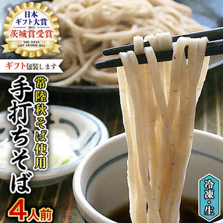 【常陸秋そば使用 手打ちそば 】< ギフト > 冷凍 手打ち そば ( 桜パッケージ ) 4人前 常陸秋そば 使用 蕎麦 生そば 麺 食品 年越し 贈答 [AN005sa]